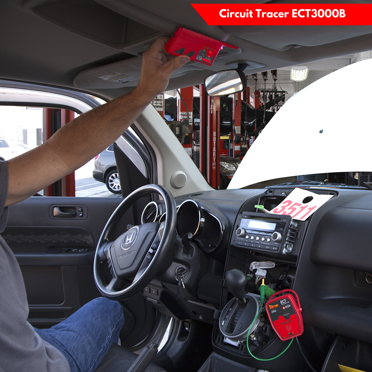 - ECT3000B circuit tracing: intelligent transmitter/receiver system follows harness routes with visual navigation and sound indicators; adjustable sensitivity 1–8 in (3–20 cm) helps narrow the fault area when tracing shorts, opens and wiring breaks.